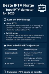 IPTV gir brukerne muligheten til å se TV-kanaler, filmer og serier via internett, på alt fra smart-TV og mobil til dedikerte Android-bokser. I Norge har etterspørselen økt betydelig, særlig fordi mange vil ha tilgang til både norske og internasjonale kanaler til en god pris. Samtidig er det store forskjeller mellom leverandørene når det gjelder stabilitet, kundestøtte, kvalitet og lovlighet.